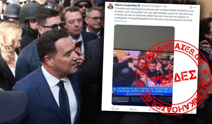 Περισσότερα Ellinika Hoaxes / Ανάλυση βίντεο: ΔΕΝ τεκμηριώνεται ο ισχυρισμός Γεωργιάδη ότι τον χτύπησε ο γιατρός ΖιαζιάςΓΝΑ ΛΑΪΚΟ: Εγκαθιστούν πανεπιστημιακό ακτινολογικό, υφαρπάζοντας το υφιστάμενο ακτινολογικό του ΕΣΥ