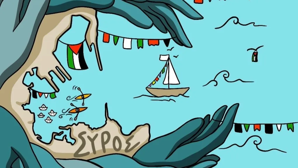 Από τη Σύρο θα αποπλεύσει το ελληνικό καράβι του Global Sumud Flotilla τη Δευτέρα για να συναντήσει πληρώματα από 44 χώρες για να σπάσει τον παράνομο αποκλεισμό της Γάζας και να φέρει ξανά στο προσκήνιο τη φωνή του παλαιστινιακού λαού.
