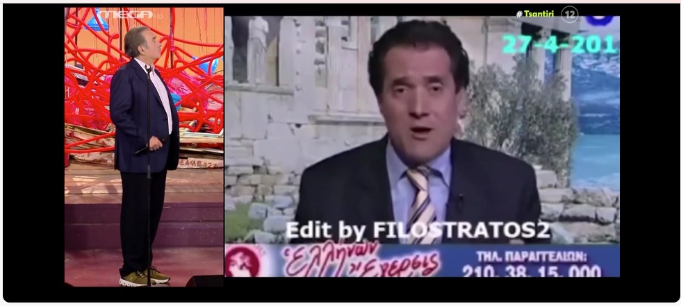 Σε ένα χαρακτηριστικό απόσπασμα από την χθεσινή εκπομπή του ο Λάκης Λαζόπουλος ανέφερε πως «όταν τελειώσει η εξουσία σας, θα συναντήσετε στους δρόμους 9 εκατομμύρια Έλληνες χωρίς τη συνοδεία των ΜΑΤ» και συμπλήρωσε «ένας άνθρωπος, ο Άδωνις, που τη Δευτέρα μισεί τους Εβραίους και την Τρίτη »Οι Εβραίοι φίλοι μας! Φίλοι μας!». Αυτός που από τη μέρα που γεννήθηκε έβλεπε τα γερμένα υποβρύχια των Γερμανών και βγήκε στο MEGA και ούρλιαζε και σε 10 μέρες τα έβλεπε ίσια τα υποβρύχια. Και αμέσως μετά τον κάναν Υπουργό. Αυτός που για τις 68.000 ψηφοφόρους του, είναι ένας φοβερός πολιτικός, γιατί συνέχεια μας τους κοπανάει στο κεφάλι. 68.000! 68.000!» είπε χαρακτηριστικά».