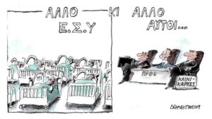 Να ‘ναι καλά ο Μητσοτάκης! Οι άλλοι στο υπουργείο δίσταζαν να γράψουν στο χαρτί τις οδηγίες, επειδή οι ψοφοδεείς φοβόνταν πως θα τους αποκαλέσουν μαυραγορίτες. Όμως ο Κυριάκος δε μασάει. Έδωσε εντολή στον Γραμματικό να βγάλει φιρμάνι, πως θα διακομίζονται στις ιδιωτικές κλινικές όσοι είναι καλά. Πολύ καλά. Τόσο που να μασάνε τα κουτάλια.